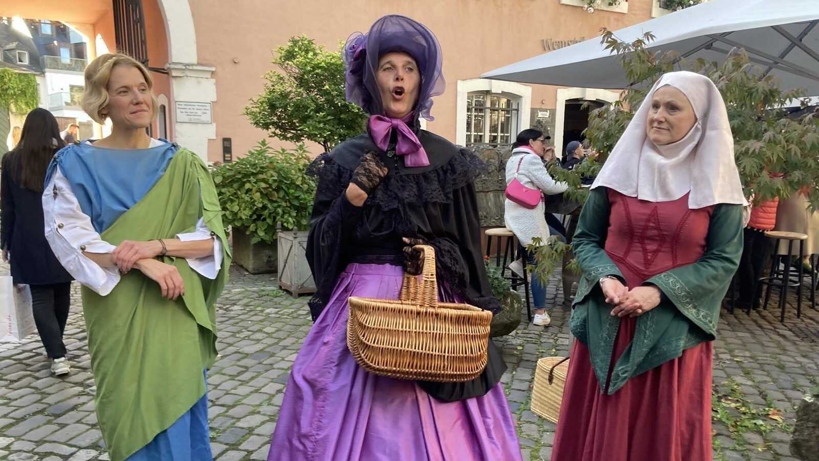 Power-Frauen unter sich: Wenn Kultur- und Weinbotschafterin Carmen Müller zu einer ihrer genüsslichen Entdeckungstouren einlädt, ist klar, dass kein Auge und keine Kehle trocken bleibt. Denn ihre Weinverkostungen verbindet sie mit jeder Menge Insiderwissen des Hospitien-Areals, begonnen mit Kaiser Augustus über Irmina und Napoleon bis hin zum Traubenadler. Und natürlich darf auch ein Wein nicht fehlen.